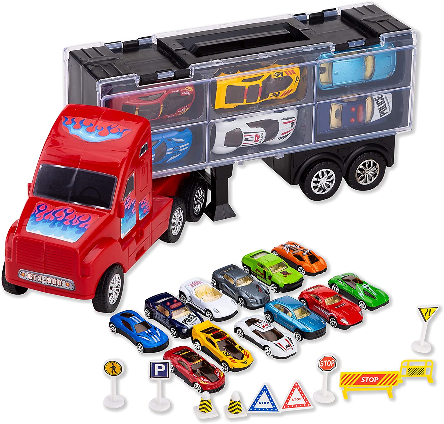 Joyin Transport Car Carrier Toy Truck Includes 12 Die Cast Toy Cars 10 Accessories Truck Carrier Fits 12 Toy Car Slots Great Car Toys For Kids Walmart Com